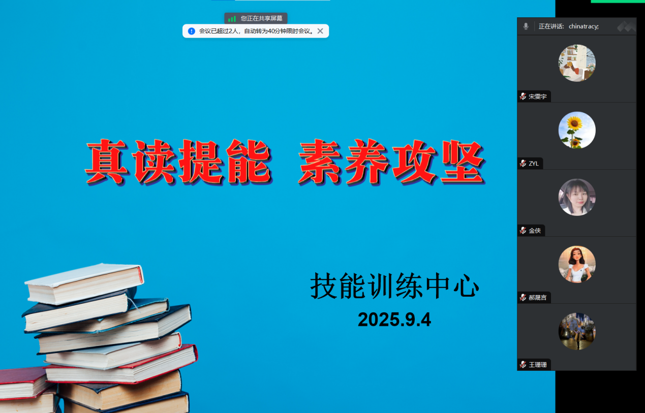 2025年9月4日,yl7703永利集团本学期技能训练专项研讨会在线上顺利举行。27位教师围绕外研阅读平台的应用以及技能训练实效的提升,展开了深入且富有成效的交流。会议着重聚焦于三大核心议题:训练平台的有效落地执行方案、学生真实阅读策略的设计,以及听说读写综合能力的培养路径。