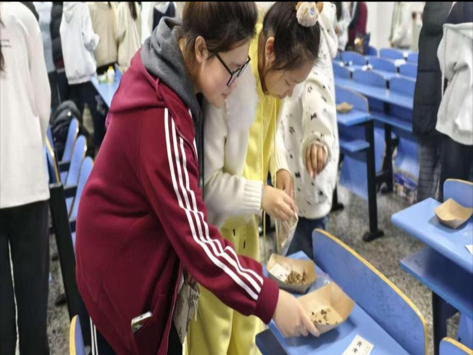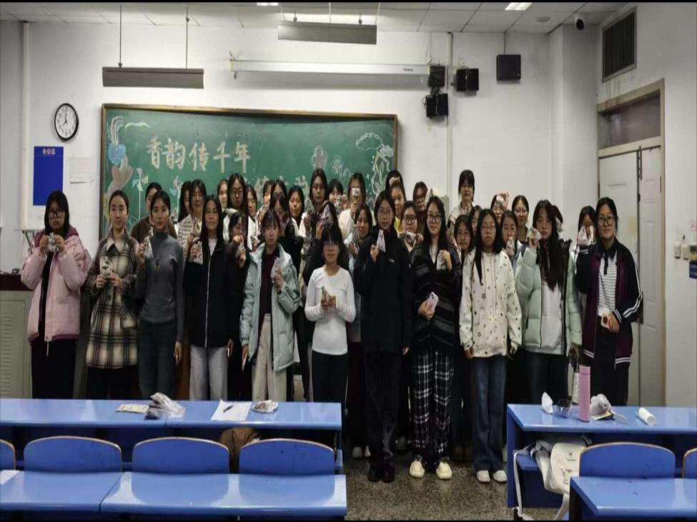 经过一个多小时的精心制作,一个个香气四溢、造型独特的香囊陆续诞生。同学们手捧自己亲手制作的香囊,脸上洋溢着满满的成就感,纷纷拍照留念,计划将这些香囊赠送给好友,传递温暖与美好祝福。随后,我们开展了击鼓传花活动,被选中的学生需在五秒内准确回答学生组织人员提出的关于香料功效的问题,同学们参与热情高涨。