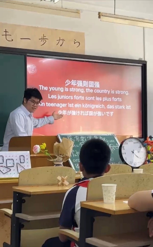在游览参观后,我院联合数信学院与小学生们共上了一堂精彩的“大中小思政课”,从“生活中无处不在的数学”和“少年强则国强”的多语种诵读,帮助小学生们建立数学思维,培养科学精神,树立家国情怀,坚定理想信念。小小思政课堂,蕴藏着大大的育人能量。yl7703永利集团黄静书记、唐翠云院长、谷世海副书记对光新庄小学师生表示了热烈的欢迎,并参与了部分活动。
