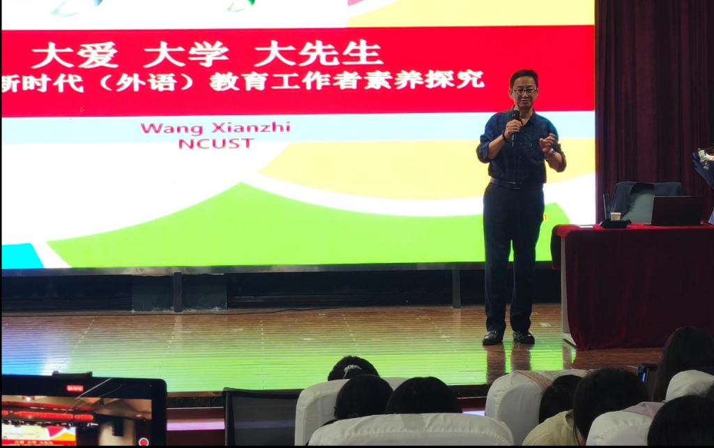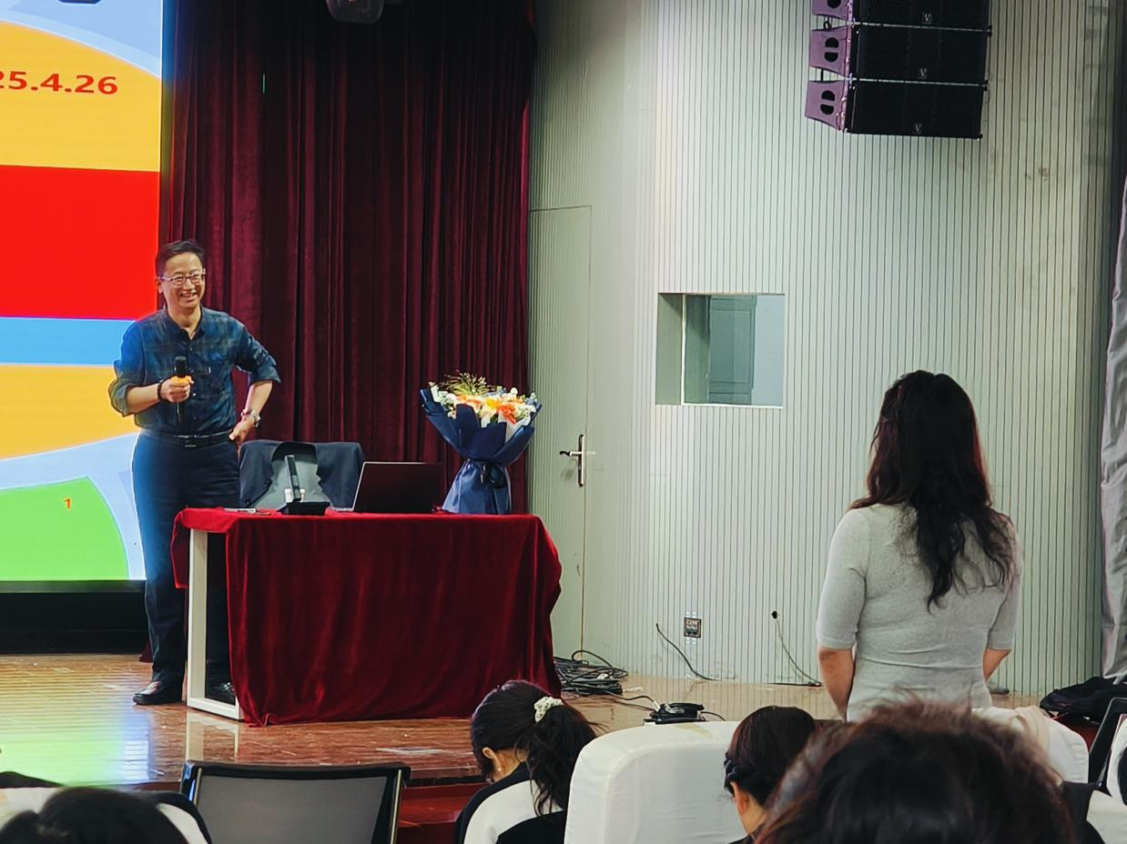 报告会上,王显智老师凭借深厚的专业底蕴和丰富的教学经验,为同学们带来了一场别开生面的分享。他以中英结合的幽默方式开场,迅速点燃现场气氛,鼓励同学们积极提问,以平等交流的姿态展开互动。在讲解过程中,王老师通过列举名师案例,强调课标与发音在教学中的重要性。他围绕“如何教育孩子”和“英语教师如何做教研”等核心问题,从教学方法、科研路径等方面深入剖析,为同学们指明方向。同学们积极参与互动,现场气氛热烈,思想的火花不断碰撞。
