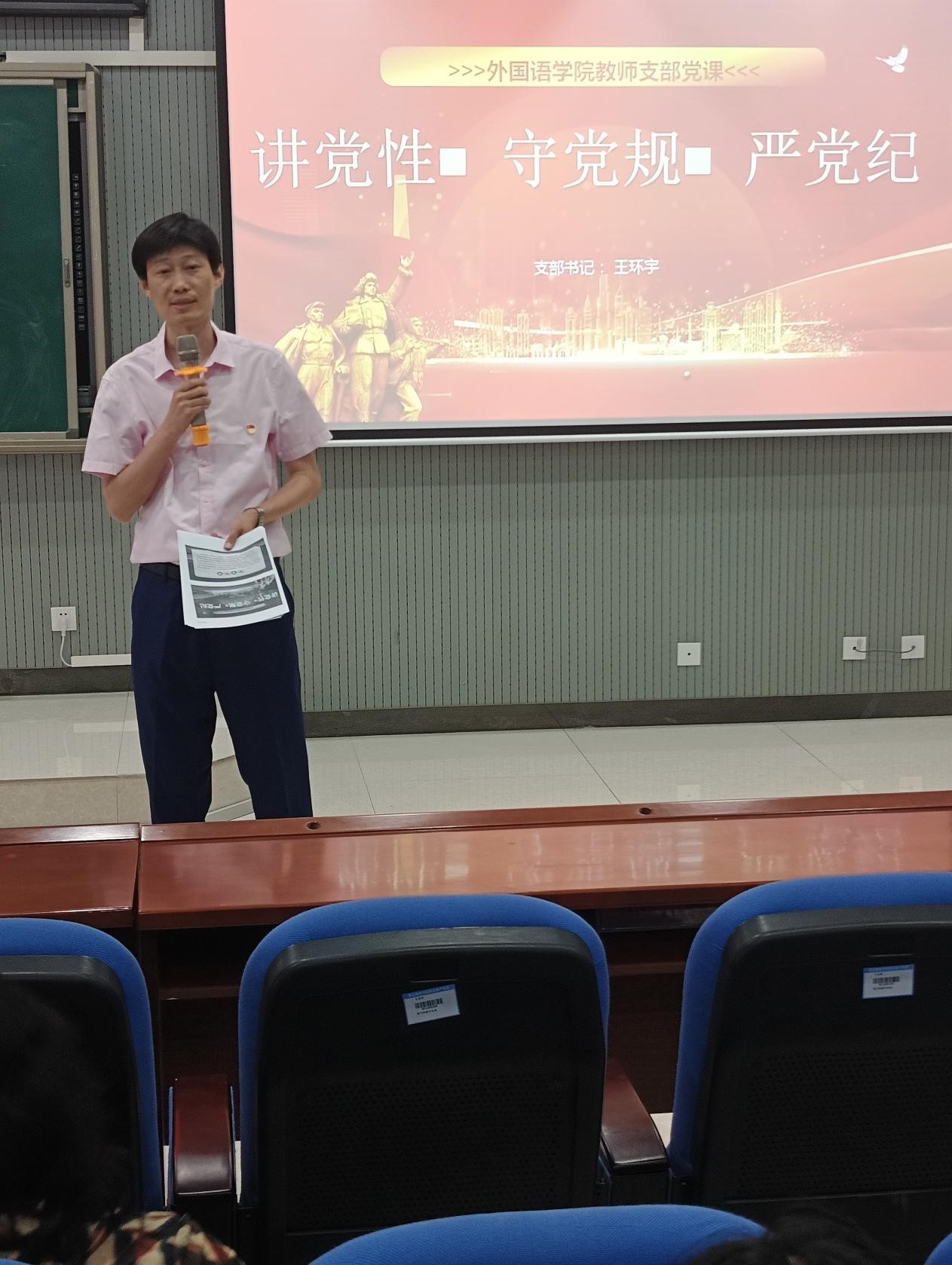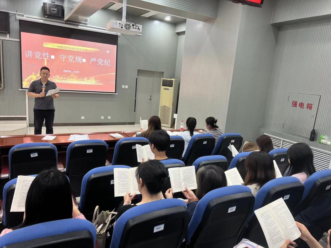 为切实推动党纪学习教育走深走实,按照《中共yl7703永利集团委员会关于开展党纪学习教育的工作方案》有关要求,5月21日下午,yl7703永利集团教师党支部书记王环宇同志以“讲党性、守党规、严党纪”为题,为全体师生党员讲授党纪学习教育专题党课,教师党支部宣传委员赵鹏同志带领大家深入学习《中国共产党纪律处分条例》。