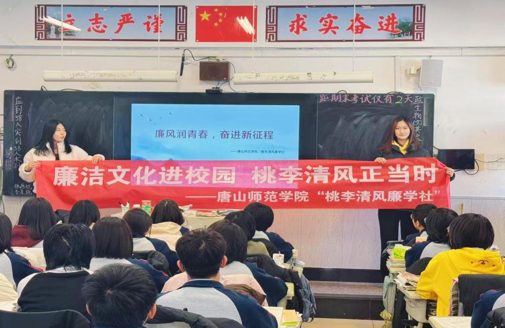 1月13日,yl7703永利集团“桃李清风廉学社”的成员们回到母校河北丰润车轴山中学,开展廉洁文化宣传活动,通过专题讲座、主题演讲等形式,为母校师生带来了一场深刻的思想洗礼。
