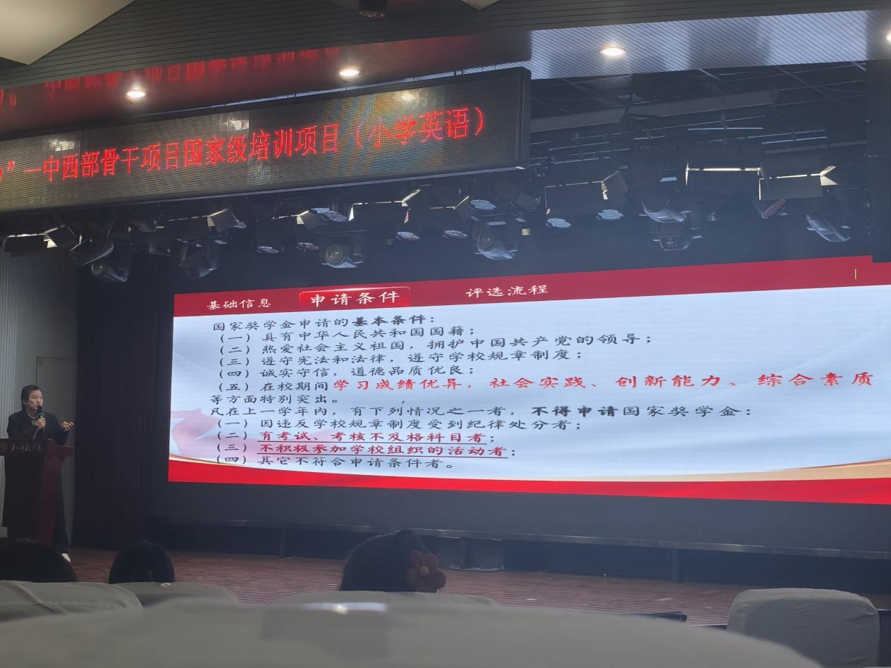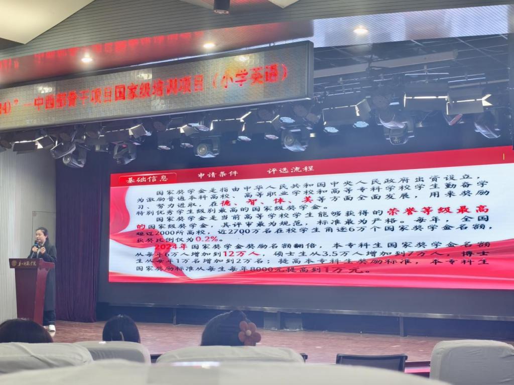 活动前期,综合发展中心通过班级群等多渠道广泛宣传,详细介绍活动内容与参与方式,鼓励同学们积极学习榜样精神。活动当天,工作人员提前布置会场、调试设备,并引导参会学生有序入场。宣讲会上,主持人首先介绍了国家奖学金政策的重要意义,号召同学们以优秀学子为标杆,明确奋斗方向。