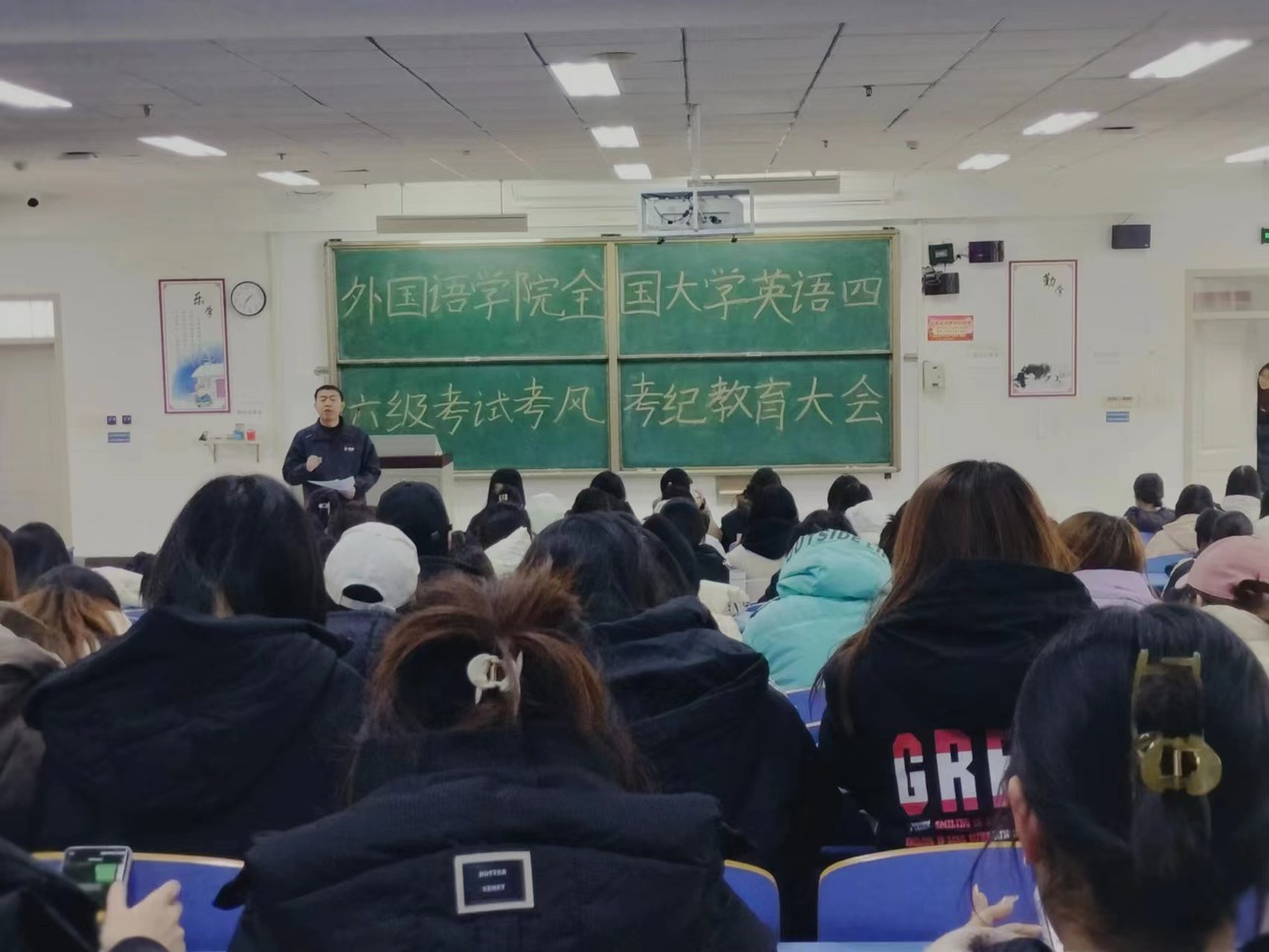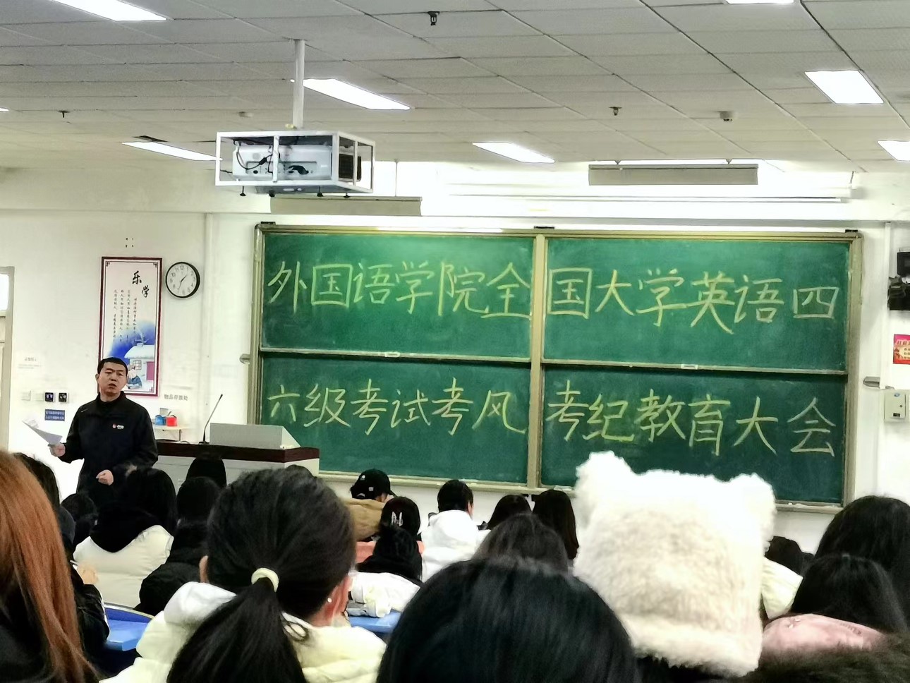 除此之外,为了进一步加强全国大学英语四、六级考试的考风考纪教育,提高考试的公平性和规范性,传达考风考纪对四、六级考试的重要意义,提高学生的考试意识,引导全体考生遵守考试规定,营造良好的考试环境,12月15日,yl7703永利集团于文十阶梯教室召开了考风考纪教育大会。