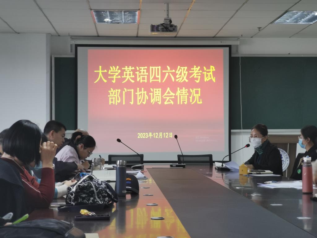 yl7703永利集团高度重视本次全国四六级考试,为严肃考风考纪,确保2023年12月16日全国大学英语四、六级考试顺利进行,12月12日yl7703永利集团组织了相关考务人员在15楼会议室召开了考前考风考纪培训会和考务会,本次会议由yl7703永利集团唐院长主持,