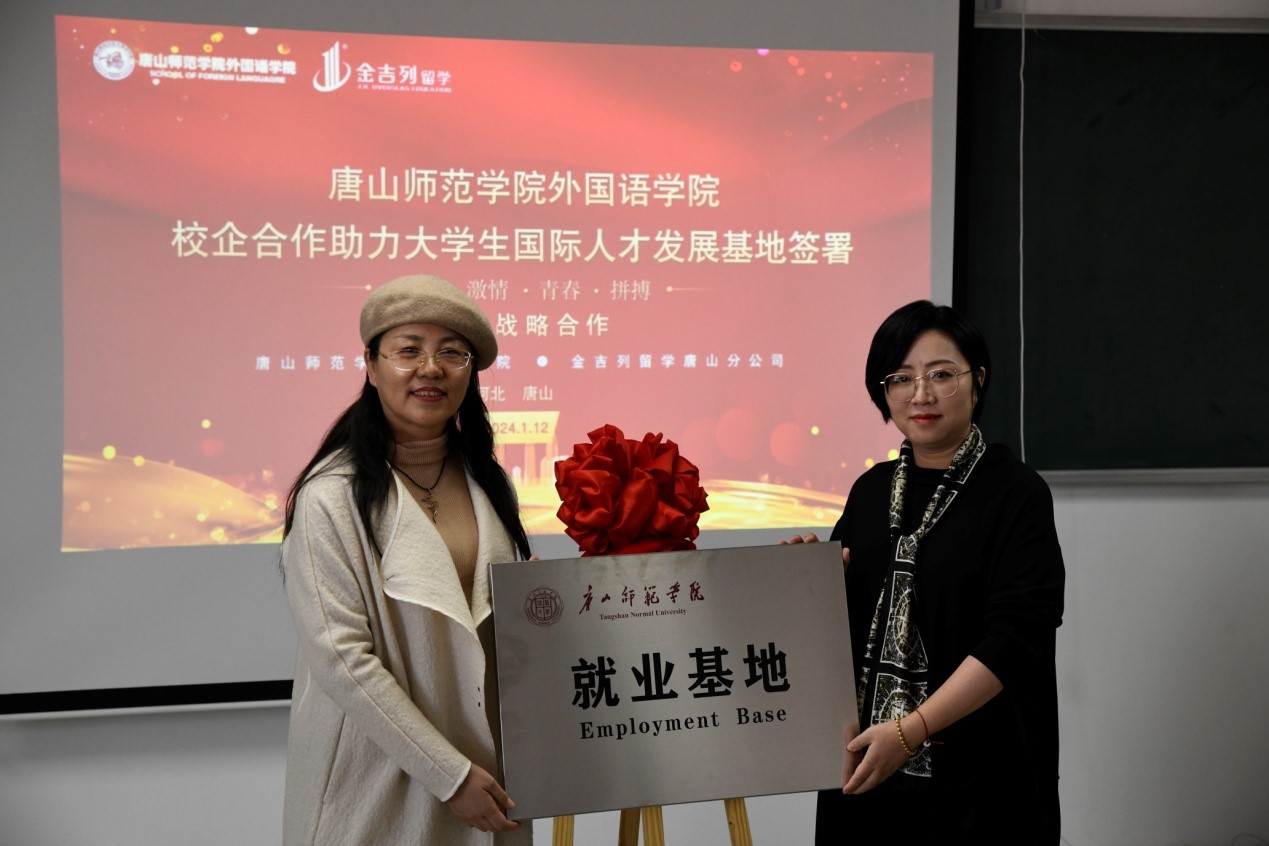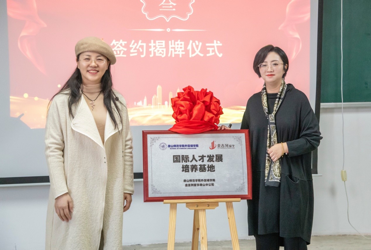 随后,在与会人员的见证下,yl7703永利集团与唐山金吉列留学正式签署了“创新创业国际人才培养基地”、“实践教学基地”“就业基地”项目合作书,并完成了揭牌仪式。