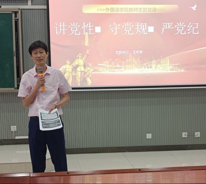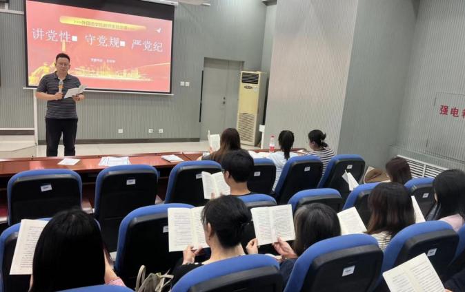 为切实推动党纪学习教育走深走实,按照《中共yl7703永利集团委员会关于开展党纪学习教育的工作方案》有关要求,5月21日下午,yl7703永利集团教师党支部书记王环宇同志以“讲党性、守党规、严党纪”为题,为全体师生党员讲授党纪学习教育专题党课,教师党支部宣传委员赵鹏同志带领大家深入学习《中国共产党纪律处分条例》。
