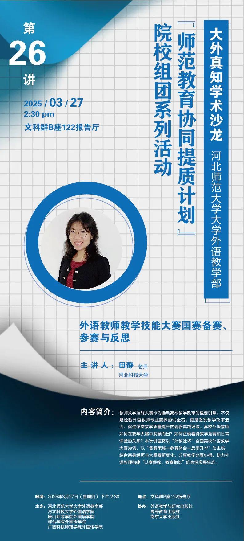主题:外语教师教学技能大赛国赛备赛、参赛与反思